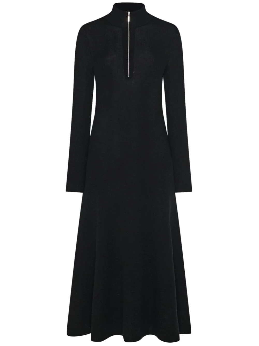 zip-up ribbed knit dress Highlights - Black - Merino wool - Ribbed knit - Short front zip fastening - High neck - Long sleeves - A-line skirt - Ankle-length Imported Composition Merino 100%
