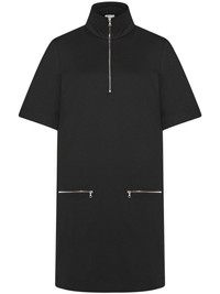 zip-up mini dress Highlights - Black - Stretch-design - Short rear zip fastening - High neck - Front zip fastening pockets - Short sleeves - Straight hem - Thigh-length Made in United States Composition FSC Viscose 96%, Elastane 4%