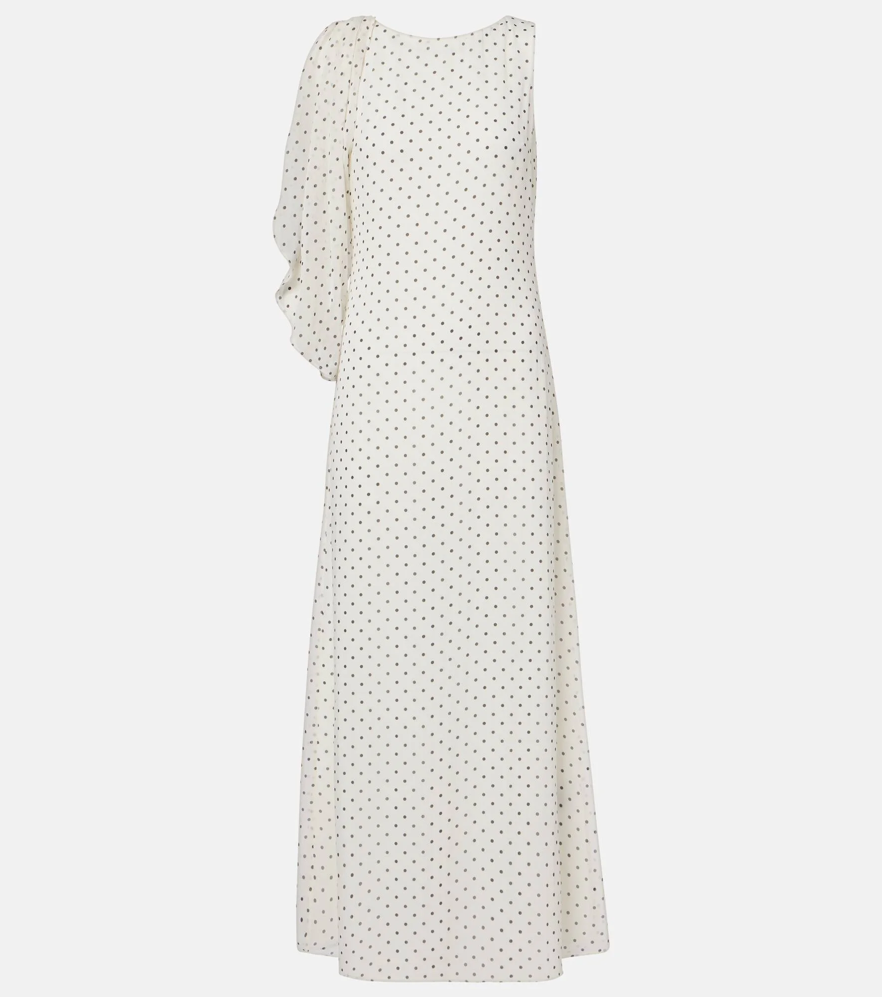 Fill the gaps in your going-out wardrobe with unique and glamorous styles from Rotate. The Adela gown is a caped style at one shoulder, crafted from airy chiffon with a subtle polka-dot pattern all over. Product Details - Material: 100% polyester - Care instructions: hand wash - Made in China - Color: white - Designer color name: Egret Comb - Lining: 95% polyester, 5% elastane - Closure: concealed zipped back - Item number: P01161422 Size & Fit - True to size - Cinched waist - Non-stretchy fabric - The model seen in the picture is 178cm-5'10" and wearing a size DE 34