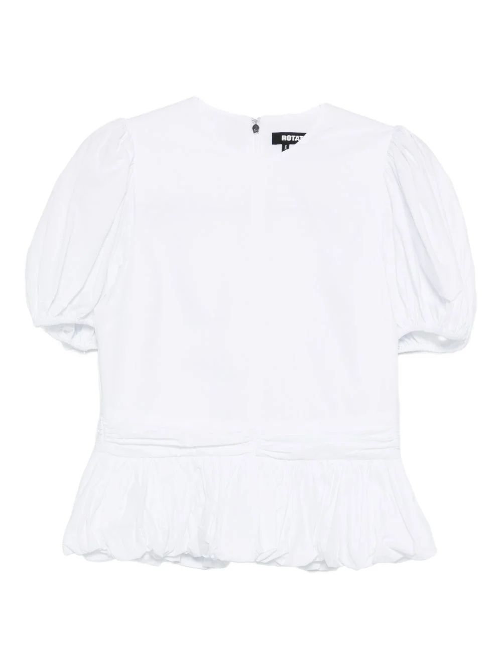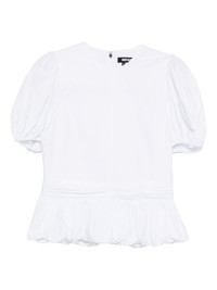 puff-sleeves peplum top Highlights - White - Puffed sleeves - Peplum hem - Rear zip fastening - Round neck - Gathered detail Imported Composition Outer: Organic Cotton 100% Lining: Cotton 100% SIZE & FIT Model measurements Height 5 ft 8 in(1.73 m) Bust/Chest 29.92 in(76 cm) Hips 33.07 in(84 cm) Waist 23.22 in(59 cm) Washing instructions Machine Wash