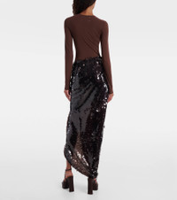 Asymmetric gathered sequined maxi skirt