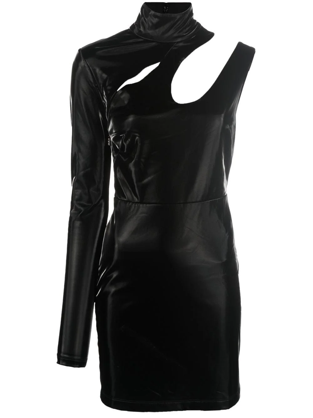 asymmetric one-sleeve mini dress Highlights - Black - Stretch-design - Asymmetric design - Single long sleeve - Cut-out detailing - High neck - Logo charm zip - Rear zip fastening - Above-knee length - Straight hem Imported Composition Outer: Polyurethane 100%, Polyester 95%, Spandex/Elastane 5% Lining: Polyester 95%, Spandex/Elastane 5% SIZE & FIT Model measurements Height 5 ft 11 in(1.8 m) Bust/Chest 31.49 in(80 cm) Hips 36.22 in(92 cm) Waist 25.59 in(65 cm) Measurement HIPS 31.49 in(80 cm) LENGTH 31.88 in(81 cm) WAIST 25.19 in(64 cm) FittingInformation This piece fits true to size. We recommend you get your regular size Cut for a slim fit Made with a mid-weight stretch fabric