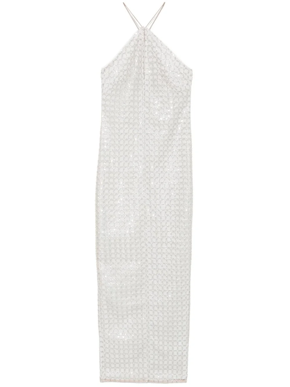 beaded maxi dress Highlights - Ecru - Rear zip fastening - Central rear vent - Halterneck - Cut-out detailing Imported Composition Outer: Recycled Polyester 100% Lining: Viscose 97%, Spandex/Elastane 3% SIZE & FIT Model measurements Height 5 ft 11 in(1.8 m) Bust/Chest 32.67 in(83 cm) Hips 36.22 in(92 cm) Waist 24.4 in(62 cm) Measurement HIPS 37 in(94 cm) LENGTH 57.48 in(146 cm) WAIST 29.92 in(76 cm) FittingInformation Designed for a close fit throughout The vented hem offers movement at the rear Made from a midweight fabric Washing instructions Hand Wash