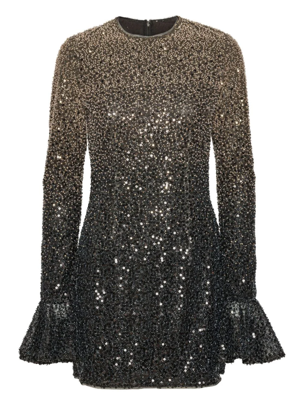 long-sleeve mini dress Highlights - Black and gold - Beaded embellishment - Long sleeves - Zip fastening - Round neck - Flared cuffs Imported Composition Outer: Recycled Polyester 100%, Polyester 100% Lining: Polyester 95%, Elastane 5% Washing instructions Read Manufacturer Guidelines
