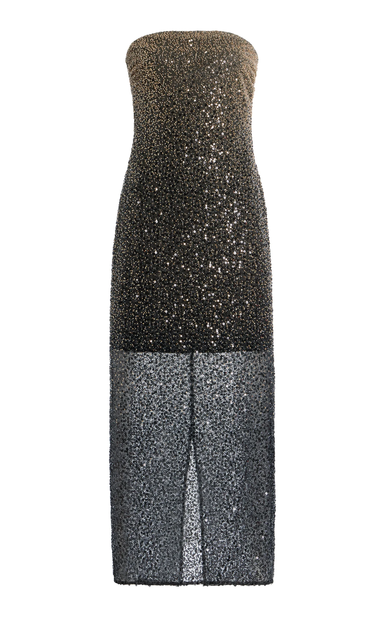 Throw on a party piece by Danish It girls Thora Valdimars and Jeanette Madsen, and you’re guaranteed to feel your oats—such is the power of their cool-girl glamour. This midi tube dress is covered in shimmering sequin embellishments and intricate beadwork. PRODUCT DETAILS - Resort '26 - Concealed zip fastening - Composition: 100% Recycled Polyester; Lining: 95% Polyester, 5% Elastane - Designer color: Incense - Dry clean - Imported SIZE & FIT - Designed for a slim fit