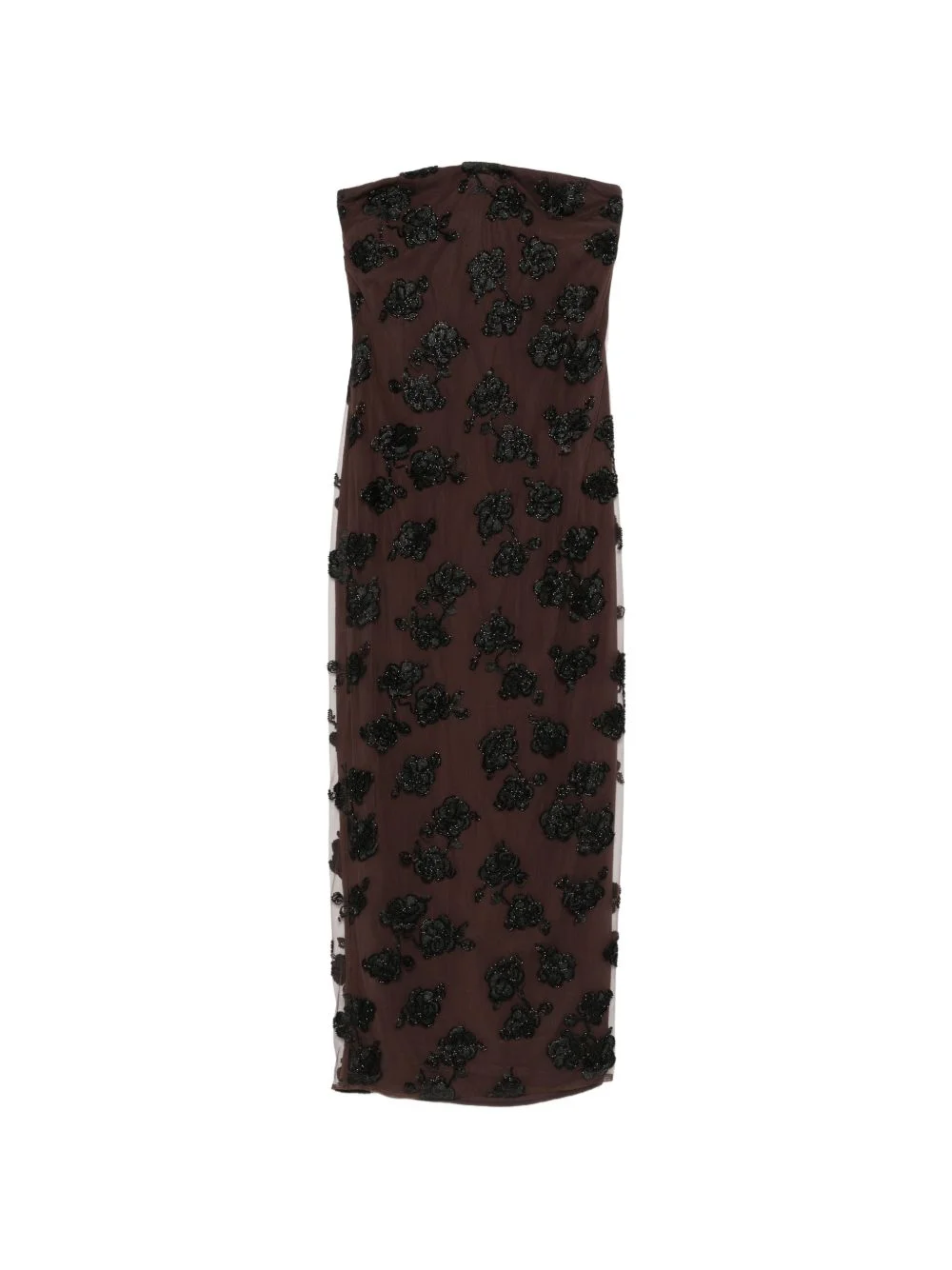 beaded maxi dress Highlights - Dark brown/black - Floral embellishment - Sleeveless - Tube style - Maxi length Imported Composition Outer: Recycled Polyester 100% Lining: Viscose 97%, Elastane 3% Washing instructions Hand Wash