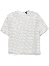 beaded top Highlights - Baby blue - Concealed rear hook and zip fastening - Shoulder pads - Crew neck - Tulle overlay Imported Composition Lining: Viscose 97%, Elastane 3% Outer: Polyester 100%