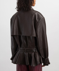 DETAILS Leather bomber jacket Oversized fit Long length Double-breasted Shoulder epaulettes Belted cuffs Structured collar Chin strap Concealed button closure Detachable belt Dropped waist Peplum hem Front welt pockets Lined SIZE & FIT Model is 178cm/5'10"; Chest: 77cm; Waist: 65cm; Hip: 92cm and wears a size 8 COMPOSITION & CARE 100% Lamb leather Lining: 100% Polyester Specialist leather dry clean