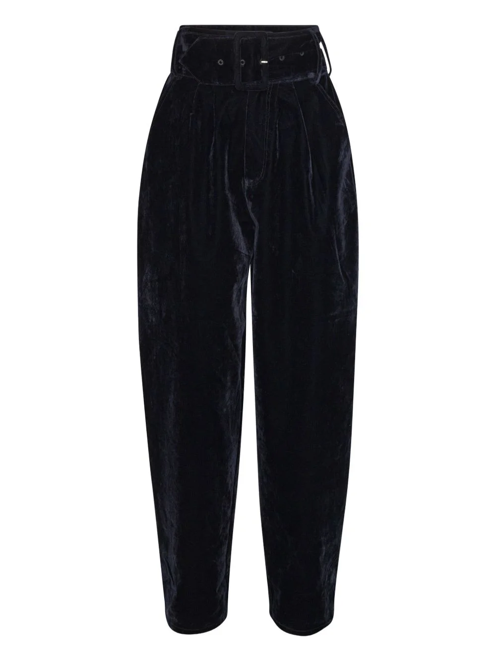 belted tapered trousers Highlights - Black - Velvet texture - Pleated front - High waist - Buckle fastening belt Imported Composition Cotton 67%, Polyester 32%, Elastane 1% Washing instructions Read Manufacturer Guidelines