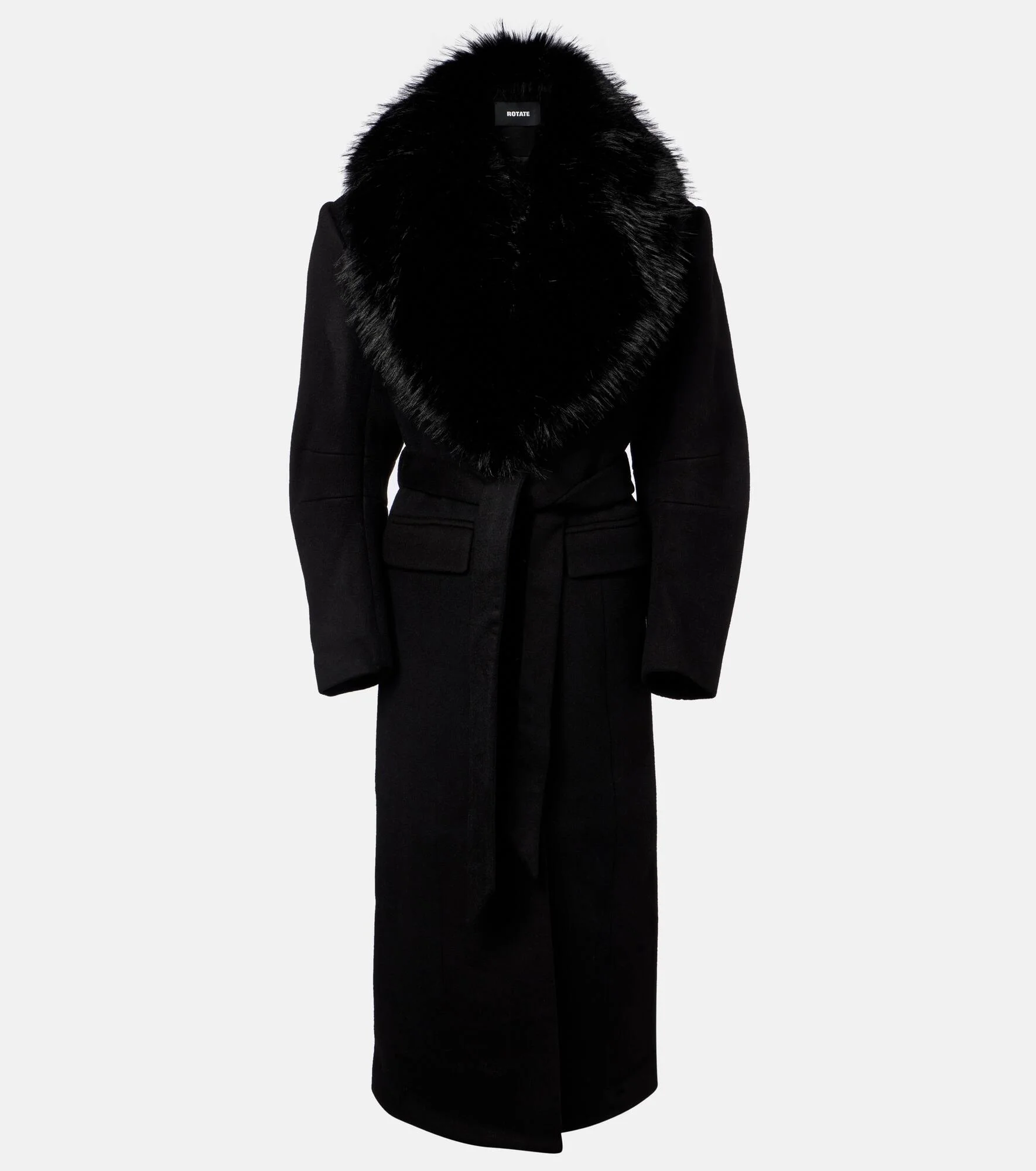Fill the gaps in your going-out wardrobe with unique and glamorous styles from Rotate. Made from black wool with removable plush trims on the collar, this coat is a single-breasted piece with flap pockets and a detachable belt. Product Details - Material: 100% wool - Care instructions: dry clean - Made in China - Designer color name: Black - Item color: black - Lining: 52% polyester, 48% viscose - Trim: 100% polyester - Closure: single-breasted (two buttons) - Pockets: flap pockets - Detachable belt - Detachable collar - Vent: single - Item number: P01113762 Size & Fit - True to size - Loose fit, comes with belt - Non-stretchy fabric - The model seen in the picture is 178cm-5'10" and wearing a size DE 34