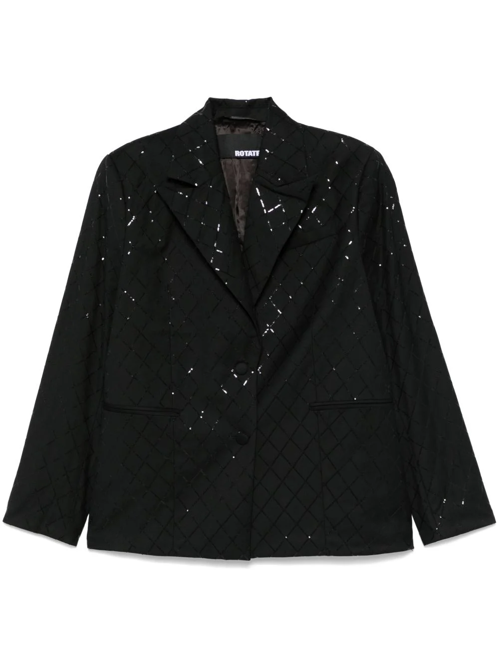 sequinned blazer Highlights - Black - Twill weave - Sequin embellishment - Front button fastening - Peak lapels - Shoulder pads - Long sleeves - Chest welt pocket - Two front jetted pockets - Italian rear vents - Satin lining - Straight hem Imported Composition Outer: Recycled Polyester 44%, Viscose 41%, Wool 12%, Elastane 3% Lining: Polyester 54%, Viscose 46% SIZE & FIT Model measurements Height 5 ft 11 in(1.8 m) Bust/Chest 33.07 in(84 cm) Hips 37.4 in(95 cm) Waist 25.19 in(64 cm) FittingInformation Designed for an oversized fit, offering additional room throughout The internal shoulder pads offer a structured shape Made from a midweight fabric
