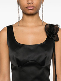 floral-applique satin dress Highlights - Black - Concealed rear zip fastening - Dart detailing - U-neck - Sleeveless Imported Composition Lining: Polyester 100% Outer: Recycled Polyester 100% SIZE & FIT Model measurements Height 5 ft 10 in(1.78 m) Bust/Chest 32.67 in(83 cm) Hips 35.43 in(90 cm) Waist 23.22 in(59 cm) FittingInformation Designed for a slim fit that sits just away from the body offering a close yet comfortable fit The dart stitching adds structure and a closer fit in the torso of this piece Made from a midweight non-stretch fabric