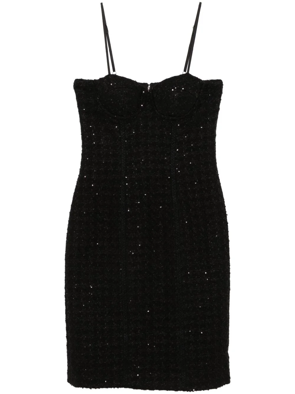 sequin-embellished boucle midi dress Highlights - Black - Boucle construction - Sequin embellishment - Concealed rear zip fastening - Sweetheart neck - Adjustable spaghetti straps - Rear slit - Full lining - Straight hem - Mid-length Imported Composition Outer: Polyacrylic 44%, Recycled Polyester 28%, Wool 25%, Polyamide 3% Lining: Viscose 97%, Elastane 3%