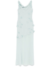 Waterfall maxi dress Highlights - Turquoise blue-green - Rear button fastening - Spaghetti straps - Floral applique - Draped detailing Imported Composition Outer: Recycled Polyester 55%, Polyester 45% Lining: Polyester 100% SIZE & FIT Measurement HIPS 39.37 in(100 cm) LENGTH 58.26 in(148 cm) WAIST 30.7 in(78 cm)