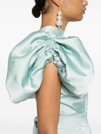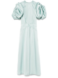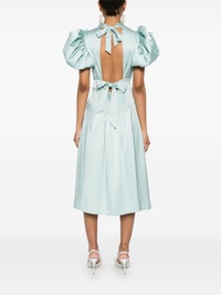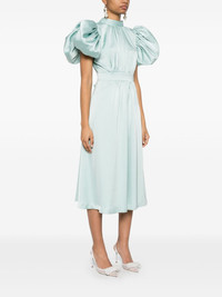 puff-sleeve satin midi dress Highlights - Aqua blue - Rear tie fastening - Elasticated cuffs - Shirred panel - Flared skirt Imported Composition Lining: Polyester 95%, Elastane 5% Outer: Recycled Polyester 60%, Polyester 40% SIZE & FIT Model measurements Height 5 ft 10 in(1.78 m) Bust/Chest 32.67 in(83 cm) Hips 35.43 in(90 cm) Waist 23.22 in(59 cm) FittingInformation The partially elasticated waistband offers increased movement and comfort at the waist Made from a midweight fabric