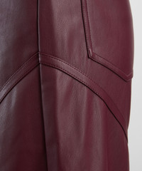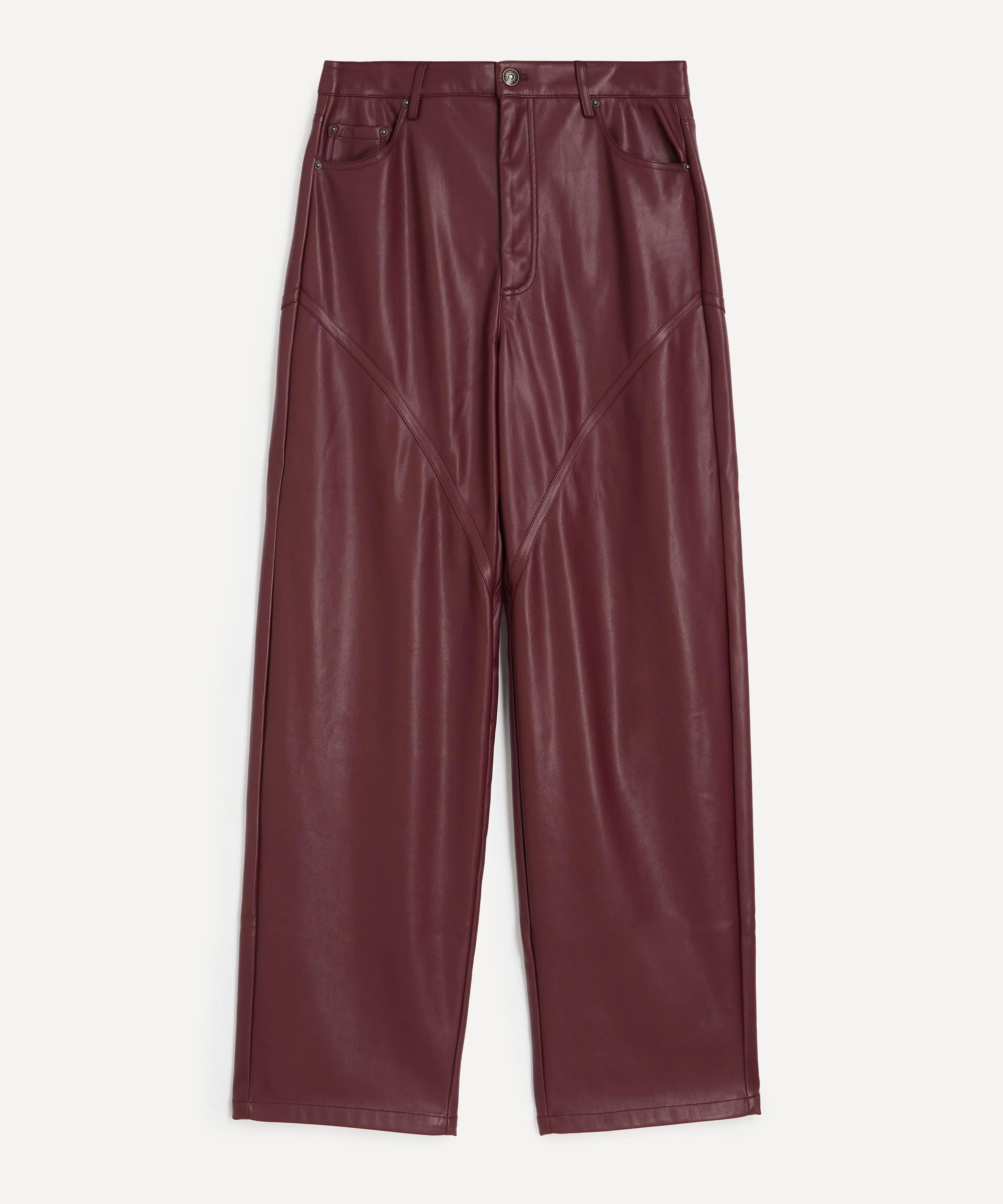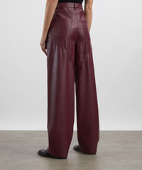 DETAILS Faux-leather trousers Mid-rise Wide-leg Curved piping Button closure Belt loops 5-pocket styling Embossed logo patch at back waistband SIZE & FIT Model is 175cm/5'9"; Chest: 76cm; Waist: 58cm; Hip: 90cm and wears a size 38 COMPOSITION & CARE Composition 1: 100% Polyester Composition 2: 100% Polyurethane Lining: 92% Polyester; 8% Elastane Dry clean