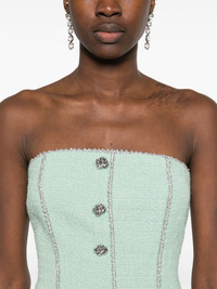 boucle mini dress Highlights - Jade green - Concealed rear hook and zip fastening - Rubber grips Imported Composition Outer: Recycled Polyester 50%, Recycled Wool 50% Lining: Viscose 97%, Elastane 3% SIZE & FIT Model measurements Height 5 ft 11 in(1.8 m) Bust/Chest 32.67 in(83 cm) Hips 36.22 in(92 cm) Waist 24.4 in(62 cm) Measurement HIPS 35.43 in(90 cm) LENGTH 25.19 in(64 cm) WAIST 28.34 in(72 cm) FittingInformation Designed for a close fit throughout Made from a midweight non-stretch fabric
