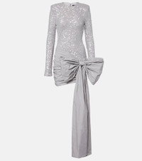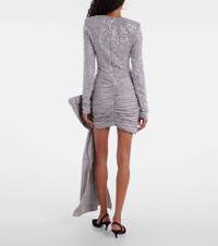 Fill the gaps in your going-out wardrobe with unique and glamorous styles from Rotate. This glimmering minidress features a minimalist, figure-skimming silhouette entirely covered in sequins and comes with a gathered skirt with an oversized bow on the side. Product Details - Material: 95% polyester (recycled), 5% elastane - Care instructions: dry clean - Made in China - Designer color name: Alloy - Item color: silver - Material II: 100% polyester (recycled) - Lining: 88% polyester, 12% elastane - Closure: concealed zipped back - Detachable shoulder pads - Item number: P01113115 Size & Fit - True to size - Shoulder pad inserts - Close fit at the hips - Fitted - Partly stretchy fabric - The model seen in the picture is 178cm-5'10" and wearing a size DE 34