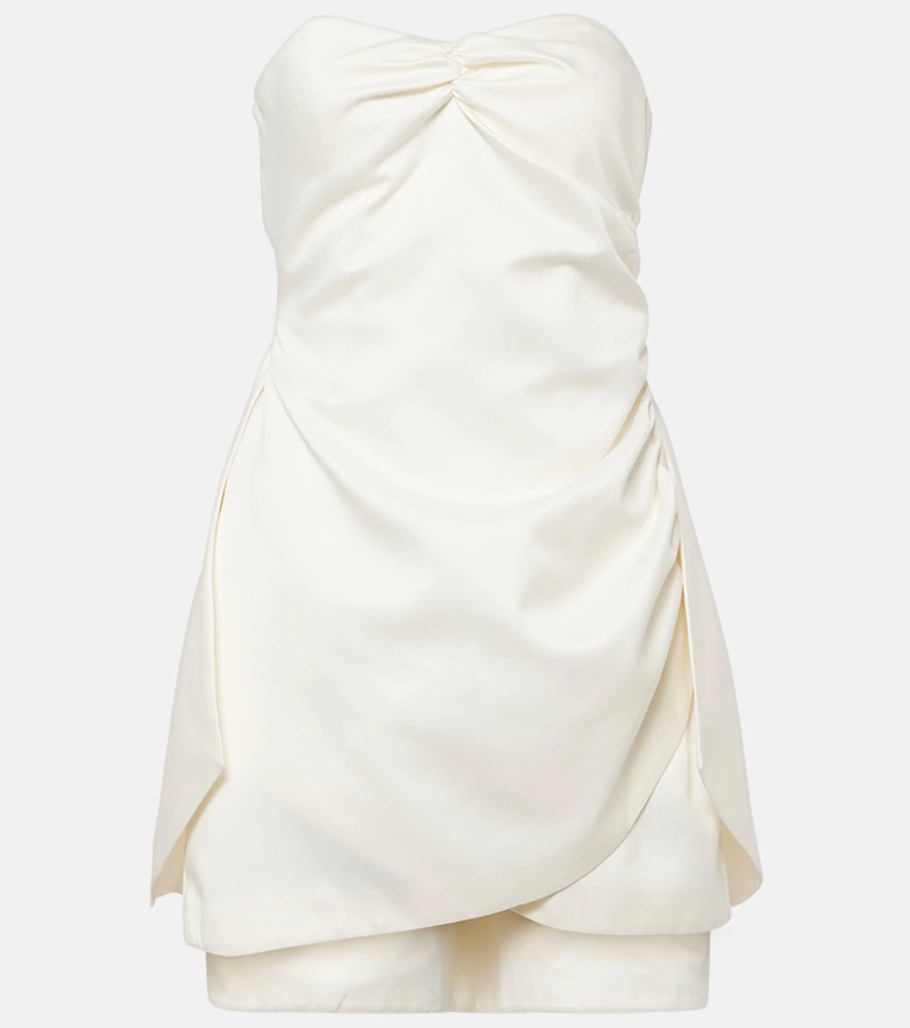 Product Details - Material: 100% recycled polyester - Care instructions: dry clean - Made in China - Designer color name: Egret - Lining: 92% polyester, 8% elastane - Closure: concealed zipper, hook fastening - Item number: P00926692 Size & Fit - True to size - Strapless - Internal boned corset for support - Cinched waist - Non-stretchy fabric - Padded top - The model seen in the picture is 178cm-5'10" and wearing a size DT 34