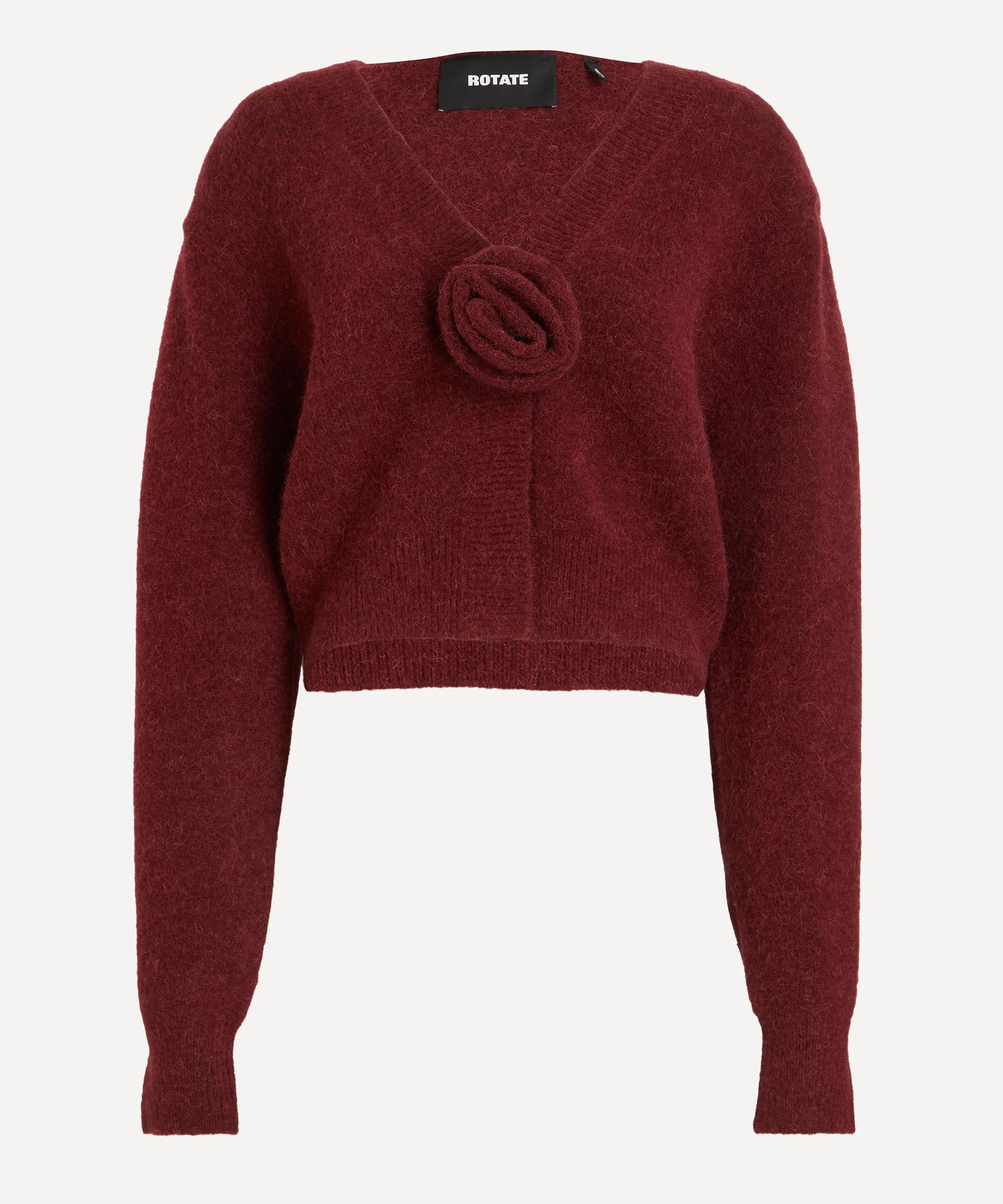 DETAILS Alpaca-wool blend cardigan Cropped fit Removable shoulder pads Voluminous long sleeves Removable knitted rosette Ribbed trims SIZE & FIT Model is 175cm/5'9"; Chest: 76cm; Waist: 58cm; Hip: 90cm and wears a size S COMPOSITION & CARE 32% Alpaca; 32% Wool; 30% Polyamide; 6% Elastane Dry clean