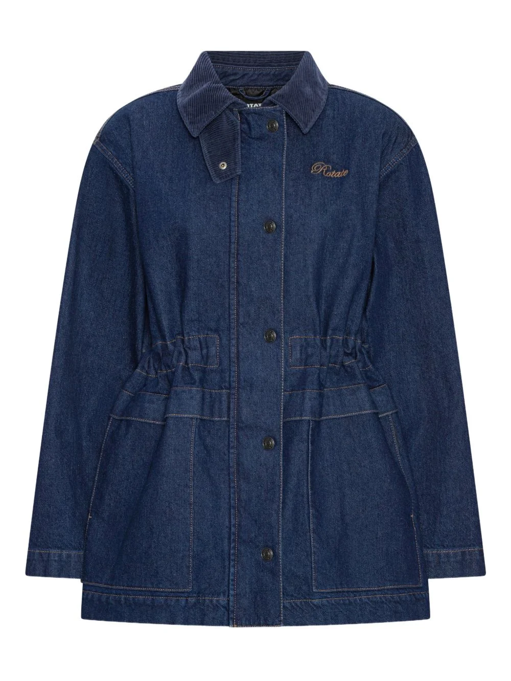 corduroy-collar woven jacket Highlights - Blue - Corduroy collar - Button fastening - Long sleeves - Embroidery - Drawstring at waist Imported Composition Cotton 99%, Elastane 1% Washing instructions Read Manufacturer Guidelines