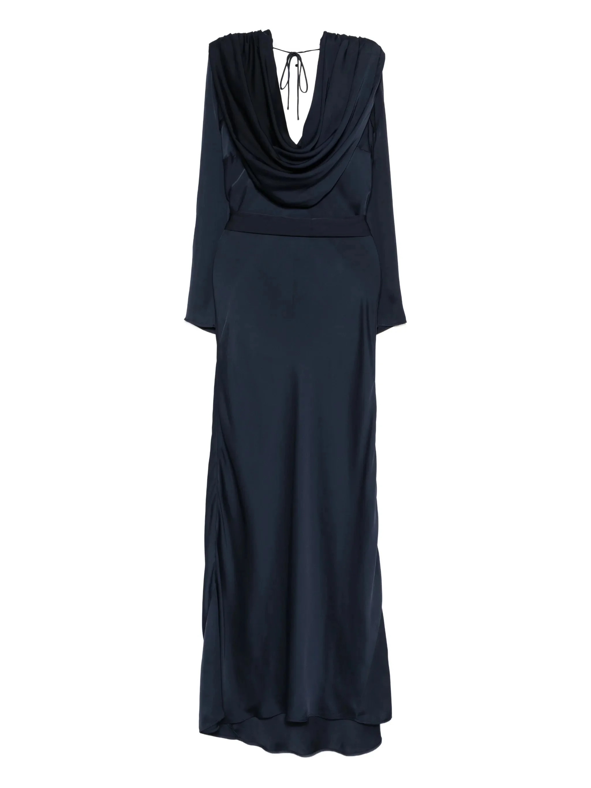 dark blue long sleeves tie belt cowl neck back tie fastening - Color: BLUE - Made in: China - Designer Style ID: 1154392318 SATIN MAXI 2318 Composition and care Polyester: 100.0%