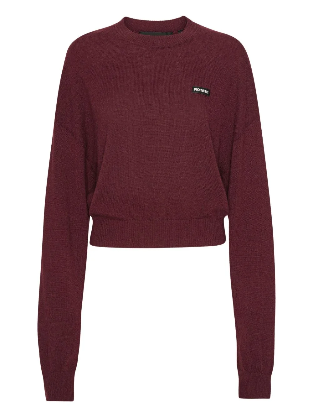 crew-neck merino-cashmere blend sweater Highlights - Burgundy - Merino-cashmere blend - Crew neck - Long sleeves - Crop length - Logo label Imported Composition Merino 95%, Cashmere 5% Washing instructions Read Manufacturer Guidelines