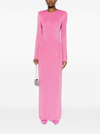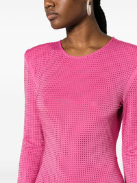 crystal-embellished open-back gown The vibrant pink hue and scores of crystals on this ROTATE BIRGER CHRISTENSEN dress draw inspiration from Paris’ baroque Hotel Costes and the late Vivienne Westwood. It’s cut from stretch-jersey with a skin-baring open back to balance the long sleeves and skirt. Highlights - Rose pink - Stretch-jersey - Crystal embellishment - Round neck - Rear button fastening - Shoulder pads - Long sleeves - Open back - Rear slit - Maxi - Straight hem Imported Composition Polyester 95%, Elastane 5% SIZE & FIT Model measurements Height 5 ft 10 in(1.77 m) Bust/Chest 34.64 in(88 cm) Hips 35.43 in(90 cm) Waist 24.8 in(63 cm) FittingInformation Designed for a close fit throughout The internal shoulder pads offer a structured shape Made from a midweight stretch fabric, this piece offers elasticity and flexibility when worn This piece fits true to size – take your usual size Washing instructions Hand Wash