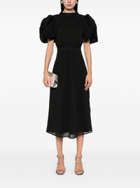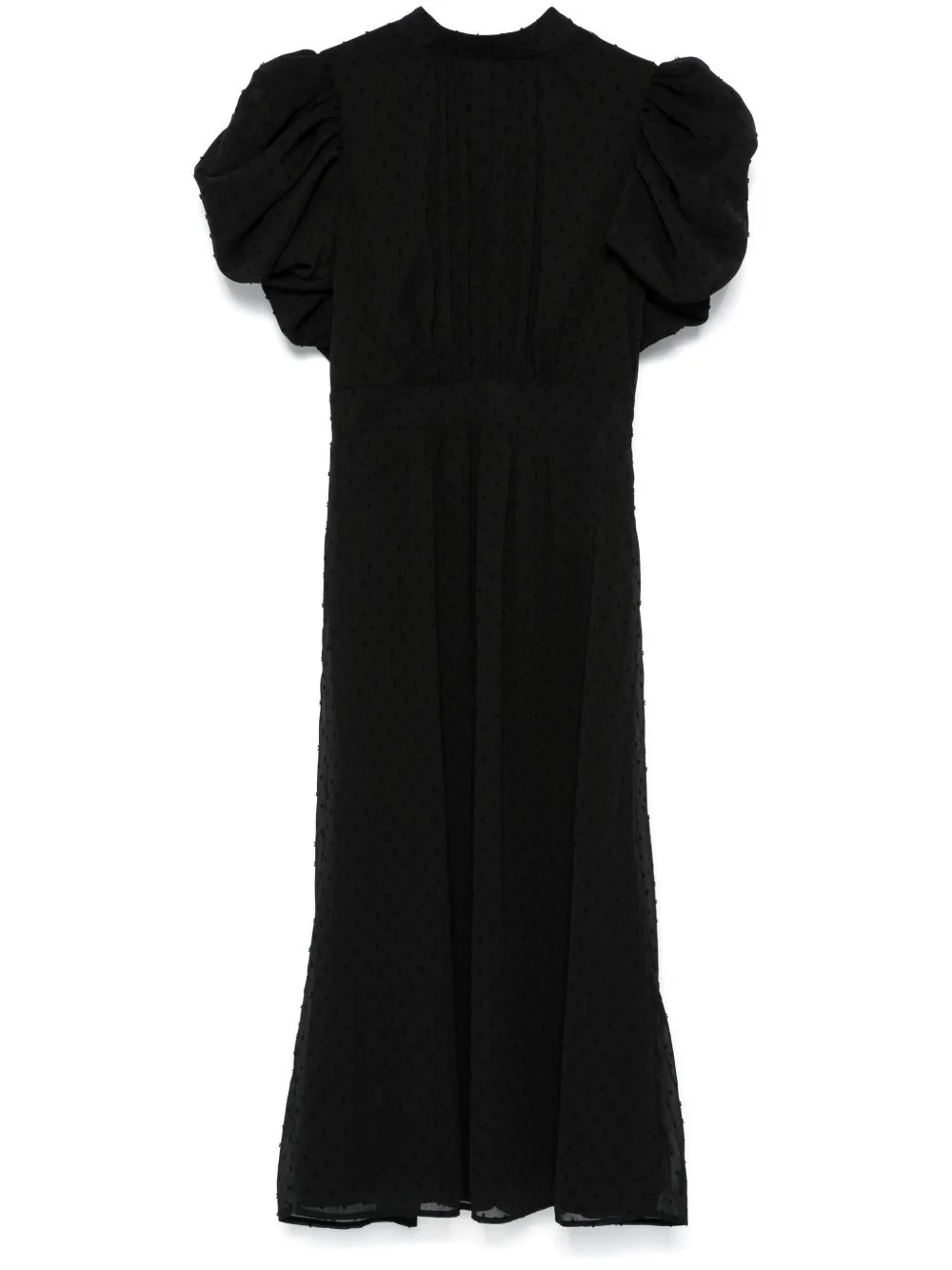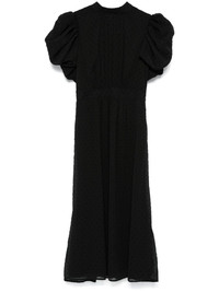 Dawnana midi dress Highlights - Black - Recycled polyester - Textured finish - Rear tie fastening - Concealed side zip fastening - Point d'esprit detailing - Mock neck - Short puff sleeves - Ruched detailing - Gathered detailing - Smocked panel - Full lining - Straight hem - Mid-length Imported Composition Recycled Polyester 100% SIZE & FIT Model measurements Height 5 ft 10 in(1.78 m) Bust/Chest 33.46 in(85 cm) Hips 36.22 in(92 cm) Waist 23.22 in(59 cm) FittingInformation Designed for a close fit at the chest and waist with a loose fit at the hip Made from a midweight non-stretch fabric