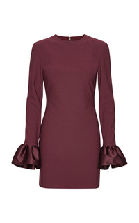 Throw on a party piece by Danish It girls Thora Valdimars and Jeanette Madsen, and you’re guaranteed to feel your oats—such is the power of their cool-girl glamour. Tailored to a slender fit, this long-sleeve mini features lustrous satin cuffs that flare at the wrist. PRODUCT DETAILS - Resort '26 - Concealed zip fastening along back - Composition: 100% Recycled Polyester; Lining: 95% Polyester, 5% Elastane - Designer color: Zinfandel - Dry clean - Imported SIZE & FIT - Designed for a slim fit