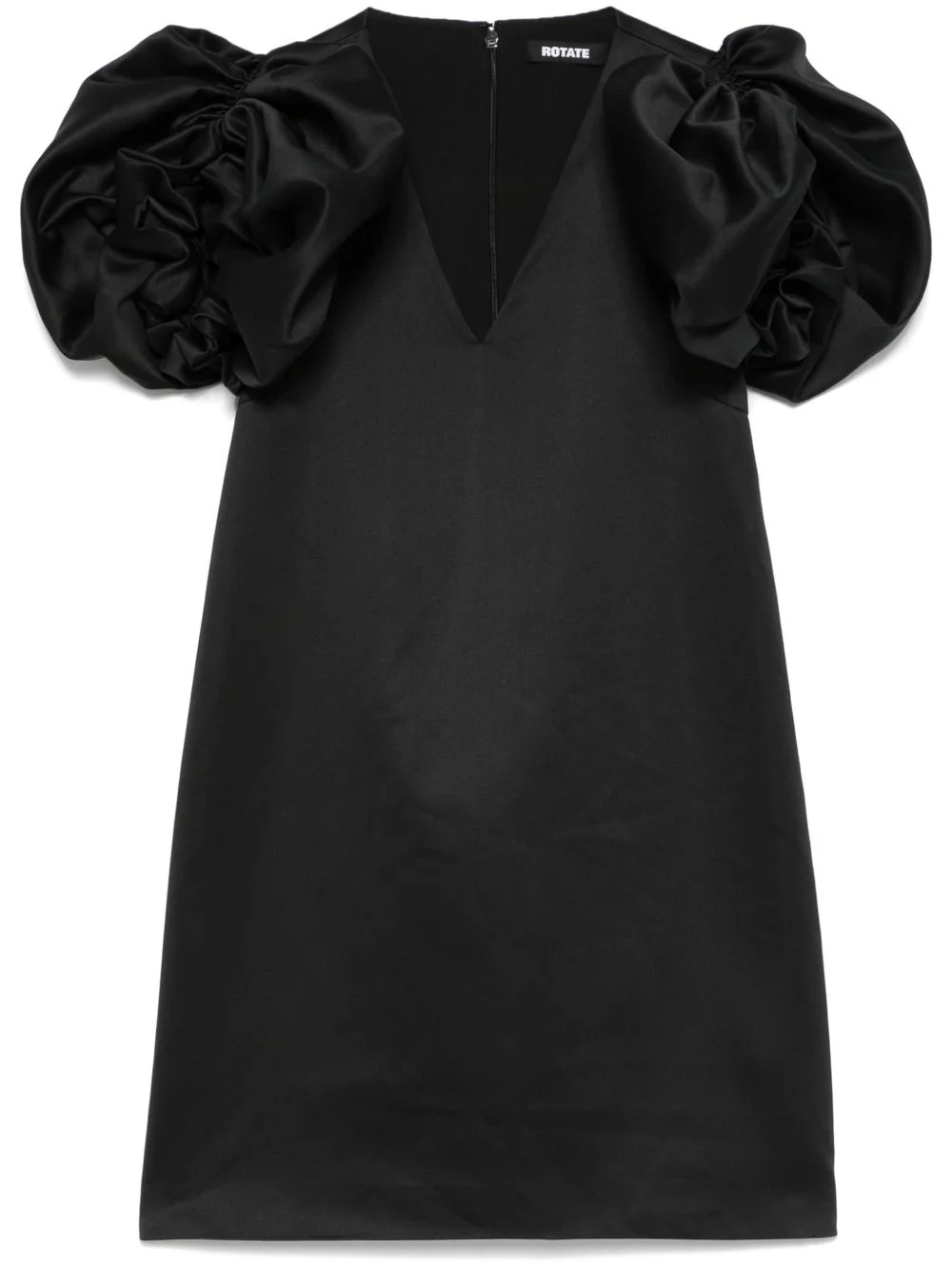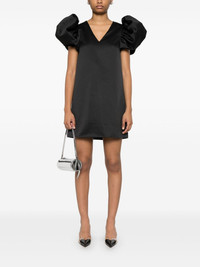 A-line satin mini dress Highlights - Black - Concealed rear hook and zip fastening - V-neck - Short puff sleeves - Straight hem Imported Composition Lining: Polyester 100% Outer: Recycled Polyester 100% SIZE & FIT Model measurements Height 5 ft 10 in(1.78 m) Bust/Chest 32.67 in(83 cm) Hips 35.43 in(90 cm) Waist 23.22 in(59 cm) Measurement SLEEVE LENGTH 3.54 in(9 cm) HIPS 41.73 in(106 cm) LENGTH 33.85 in(86 cm) WAIST 38.58 in(98 cm) FittingInformation Designed to be fitted across the shoulders, becoming looser as it falls Made from a midweight non-stretch fabric Washing instructions Dry Clean Only