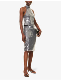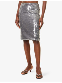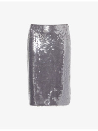 PRODUCT DETAILS - ROTATE Birger Christensen woven mini skirt - 100% polyester - Concealed zip fastening - Regular fit, mid-rise, structured waistband, sequin woven texture, lined - Dry clean only - True to size - Size UK 8: length 23.5in / 60cm - Model is 5ft 10in/1.78m and wears a size UK 8 - Lightweight, non-stretch Ref: R04483749