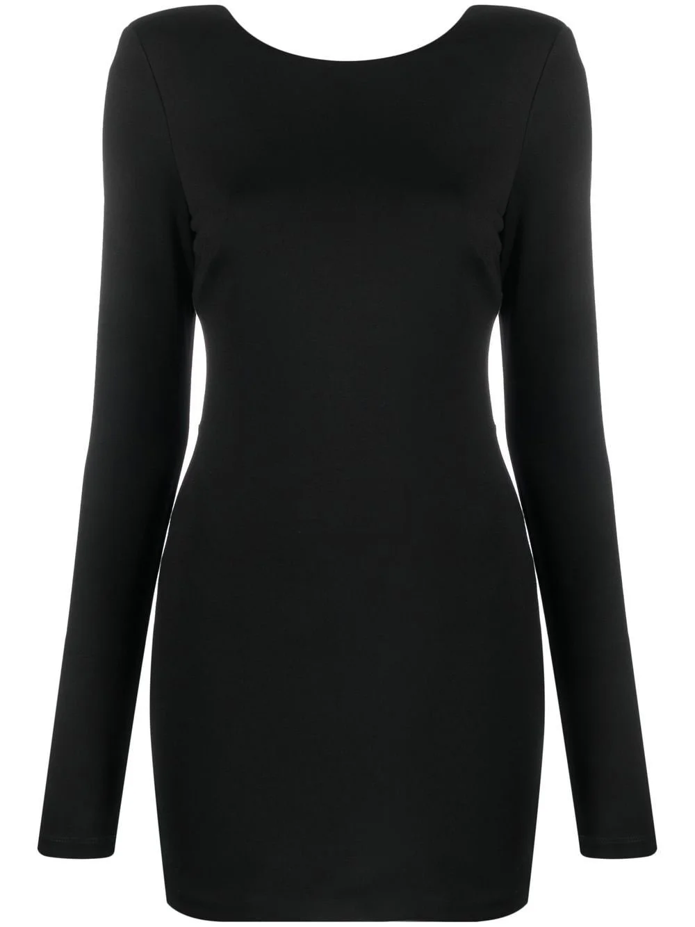 open-back minidress black cut-out detailing slash neck long sleeves Imported Composition Outer: Viscose 65%, Polyamide 30%, Elastane 5% Lining: Polyamide 100% SIZE & FIT Model measurements Height 5 ft 10 in(1.79 m) Bust/Chest 31.49 in(80 cm) Hips 35.03 in(89 cm) Waist 23.62 in(60 cm) Washing instructions Hand Wash
