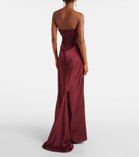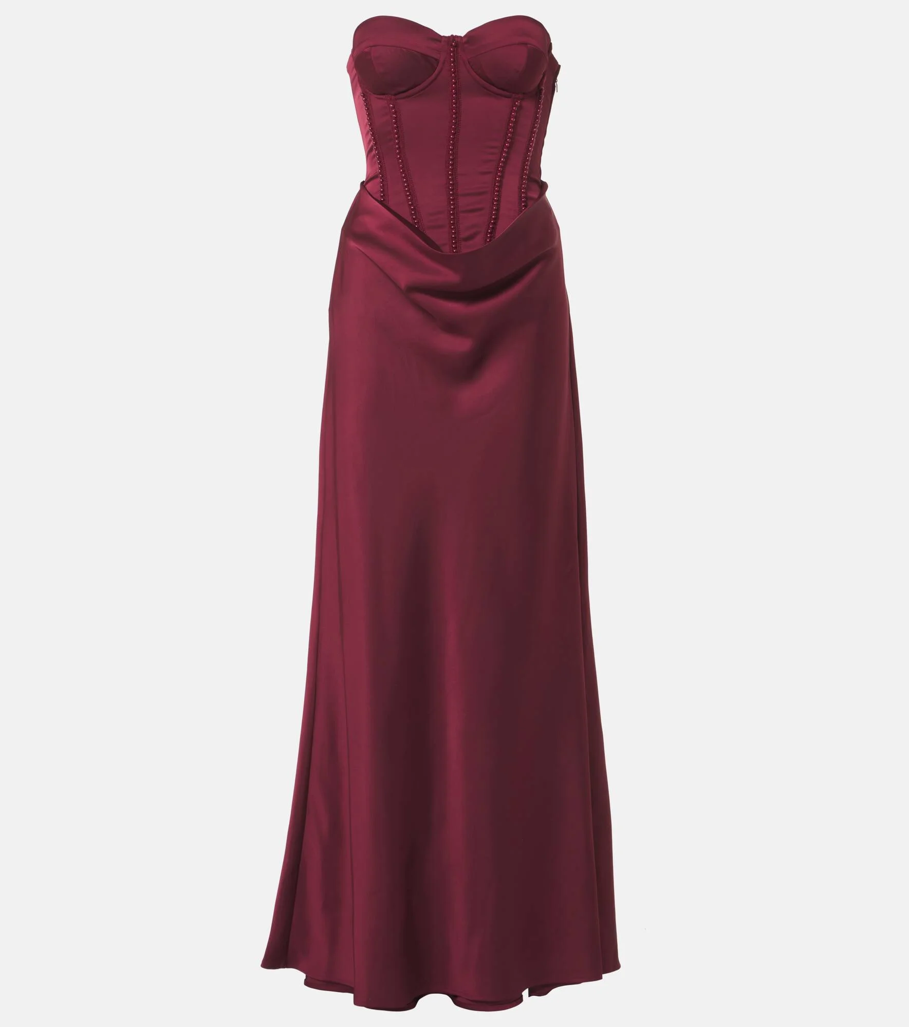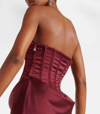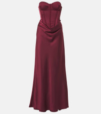 Embellished draped satin corset gown