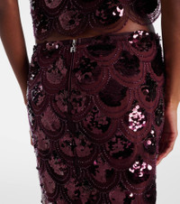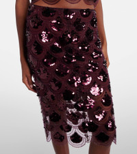 Fill the gaps in your going-out wardrobe with unique and glamorous styles from Rotate. This glimmering midi skirt is crafted from soft mesh to a classic pencil silhouette and is embroidered with beads and sequins in a geometric motif. Product Details - Material: 100% polyester - Care instructions: dry clean - Made in China - Designer color name: Port Royale - Item color: burgundy - Lining: 92% polyester, 8% elastane - Closure: concealed zipped side - Item number: P01113127 Size & Fit - True to size - Fitted - Non-stretchy fabric - The model seen in the picture is 178cm-5'10" and wearing a size DE 34
