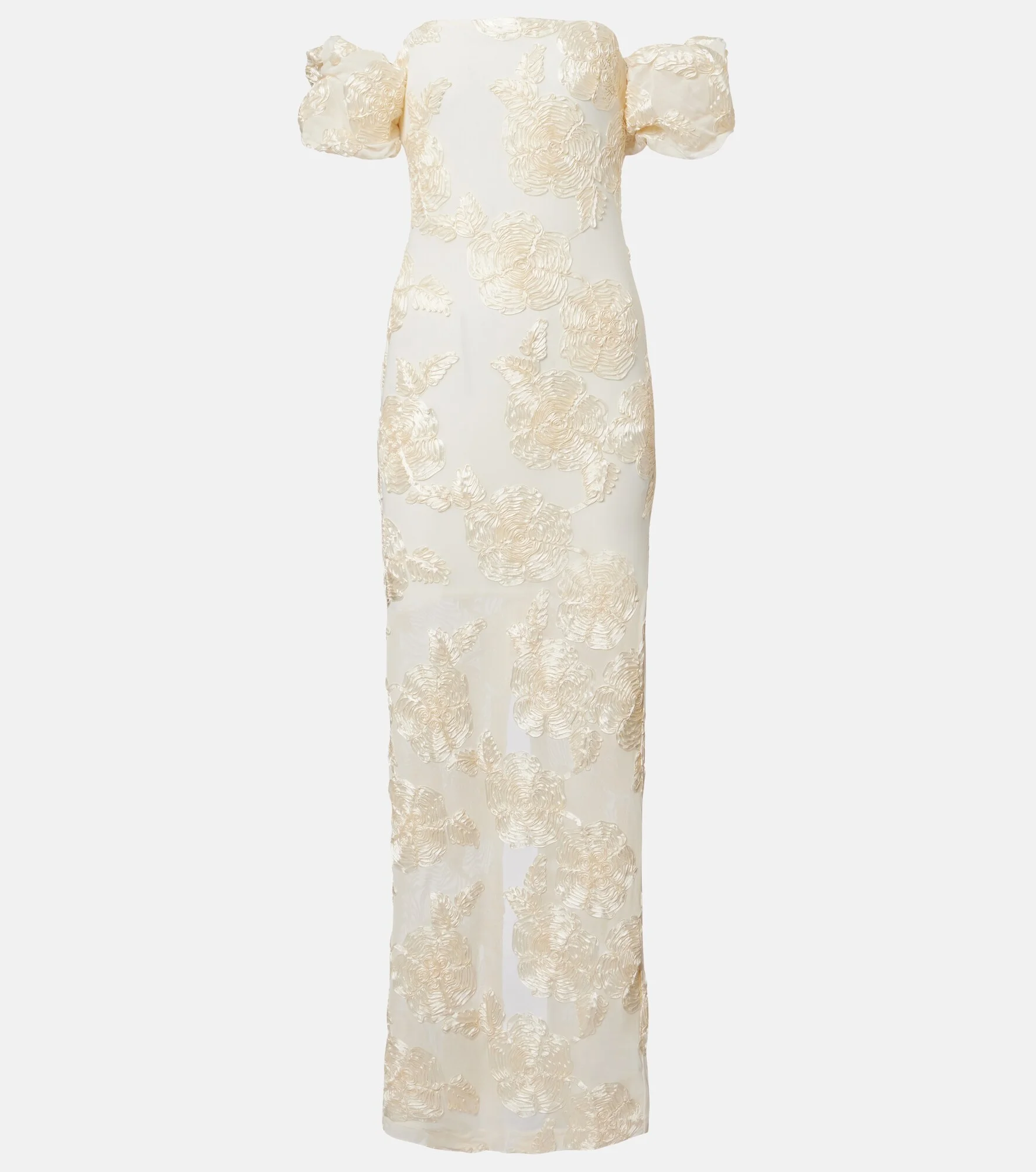 Rotate sees effortless silhouettes cut from luxurious materials and cinched with a dose of covetable Danish quirk. This gown boasts a bustier bodice and intricate embroidered details. Product Details - Material: 95% polyester (recycled), 5% elastane - Care instructions: dry clean - Made in China - Color: white - Designer color name: Egret - Lining: 88% polyester, 12% elastane - Embroidery: 100% polyester - Closure: concealed zipped back - Hook-fastening built-in bustier - Item number: P01161364 Size & Fit - True to size - Off-the-shoulder - Fitted - Slightly stretchy fabric - slit length 62cm-24.5" - The model seen in the picture is 178cm-5'10" and wearing a size DE 34