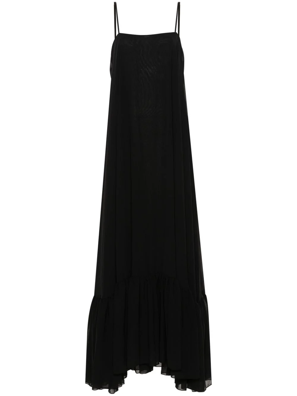 flared sleeveless dress Highlights - Black - Recycled polyester - Flared - Flared hem - Adjustable spaghetti straps - Sleeveless - Full lining - Extra-long length Imported Composition Outer: Recycled Polyester 100% Lining: Recycled Polyester 100%