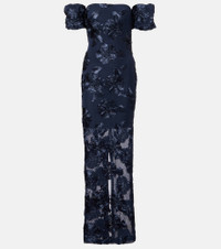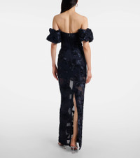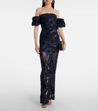 Fill the gaps in your going-out wardrobe with unique and glamorous styles from Rotate. Crafted from mesh, this strapless gown is detailed with a center-back slit, detachable sleeves, and statement floral-appliques for an elegant edge. Product Details - Material: 95% polyester (recycled), 5% elastane - Care instructions: dry clean - Made in China - Designer color name: Sky Captain - Item color: blue - Details: 100% polyester - Lining: 88% polyester, 12% elastane - Hardware color: silver - Detachable sleeves - Closure: concealed zipped back, hook-fastening back - Short vent - Item number: P01113102 Size & Fit - True to size - Strapless - Fitted - Slightly stretchy fabric - slit length 64,0cm-25" - The model seen in the picture is 178cm-5'10" and wearing a size DE 34