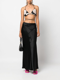 floral-embroidered halterneck bra top Highlights - Black/cream white - Recycled polyester blend - Floral embroidery - Mesh panelling - Triangle cup - Halterneck tie fastening - Silver-tone logo plaque - Tie-fastening straps Imported Composition Lining: Polyester 95%, Spandex/Elastane 5% Outer: Recycled Polyester 95%, Spandex/Elastane 5% SIZE & FIT Model measurements Height 5 ft 10 in(1.77 m) Bust/Chest 31.88 in(81 cm) Hips 36.22 in(92 cm) Waist 24.01 in(61 cm) FittingInformation Designed for a close fit throughout The tie fastening gives an adaptable and personalised fit Made from a midweight non-stretch fabric This piece fits true to size – take your usual size