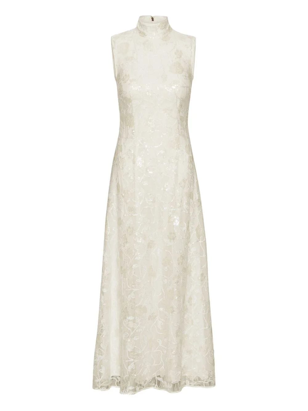 sequin-lace maxi dress Highlights - White - Sequin embellishment - Lace fabric - Sleeveless - Zip fastening Imported Composition Lining: Polyester 100% Outer: Polyamide 90%, Elastane 10% Washing instructions Hand Wash