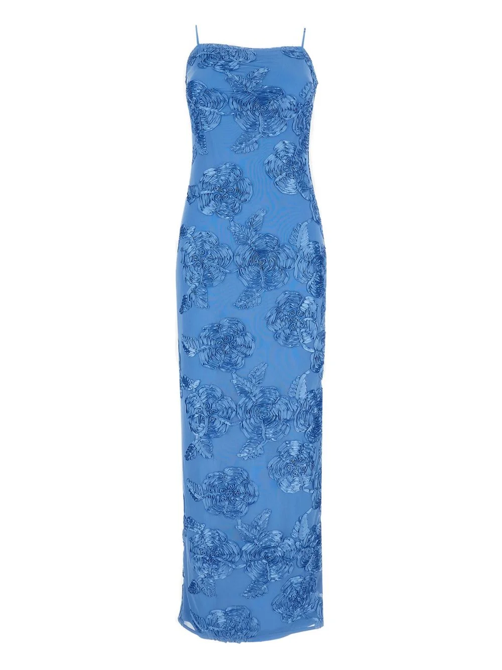raised-floral strap maxi dress Highlights - Blue - Raised floral pattern - Straps - Centre back closure - Sheath style Imported Composition Polyester 95%, Spandex/Elastane 5% Washing instructions Read Manufacturer Guidelines