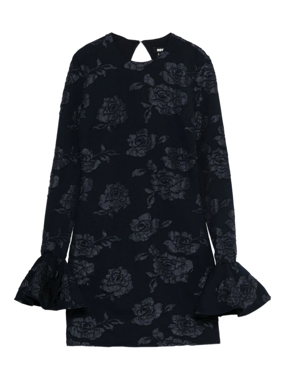 floral-motif mini dress Highlights - Navy blue - Floral motifs - Long sleeves - Mini length Imported Composition Outer: Recycled Polyester 55%, Elastomultiester 40%, Polyester 5% Lining: Viscose 97%, Elastane 3% SIZE & FIT Model measurements Height 5 ft 10 in(1.78 m) Bust/Chest 31.49 in(80 cm) Hips 37 in(94 cm) Waist 23.62 in(60 cm) Washing instructions Machine Wash