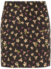 floral-pattern jacquard miniskirt Highlights - Black/violet purple/light yellow - Patterned jacquard - All-over floral print - Off-centre crystal-embellished buttons - Straight hem - Unlined - Thigh-length Imported Composition Viscose 51%, Circulose® 49% SIZE & FIT Model measurements Height 5 ft 10 in(1.78 m) Bust/Chest 31.49 in(80 cm) Hips 35.03 in(89 cm) Waist 23.62 in(60 cm) Washing instructions Hand Wash