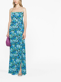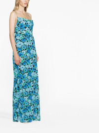 floral-print maxi dress This maxi dress encapsulates ROTATE BIRGER CHRISTENSEN’s maximalist aesthetic, thanks to the tonal blue floral print. Ultra-thin straps and draped detailing at the back add a refined touch. Highlights - Blue - Recycled polyester - Crepe texture - All-over floral print - Draped detailing - Square neck - Spaghetti straps - Floor-length Imported Composition Lining: Recycled Polyester 100% Outer: Recycled Polyester 100% SIZE & FIT Model measurements Height 5 ft 9 in(1.75 m) Bust/Chest 31.49 in(80 cm) Hips 34.05 in(86.5 cm) Waist 24.21 in(61.5 cm) FittingInformation Designed for a close fit at the chest and waist with a loose fit at the hip The elasticated waist allows for a comfortable fit Made from a midweight non-stretch fabric This piece fits true to size – take your usual size