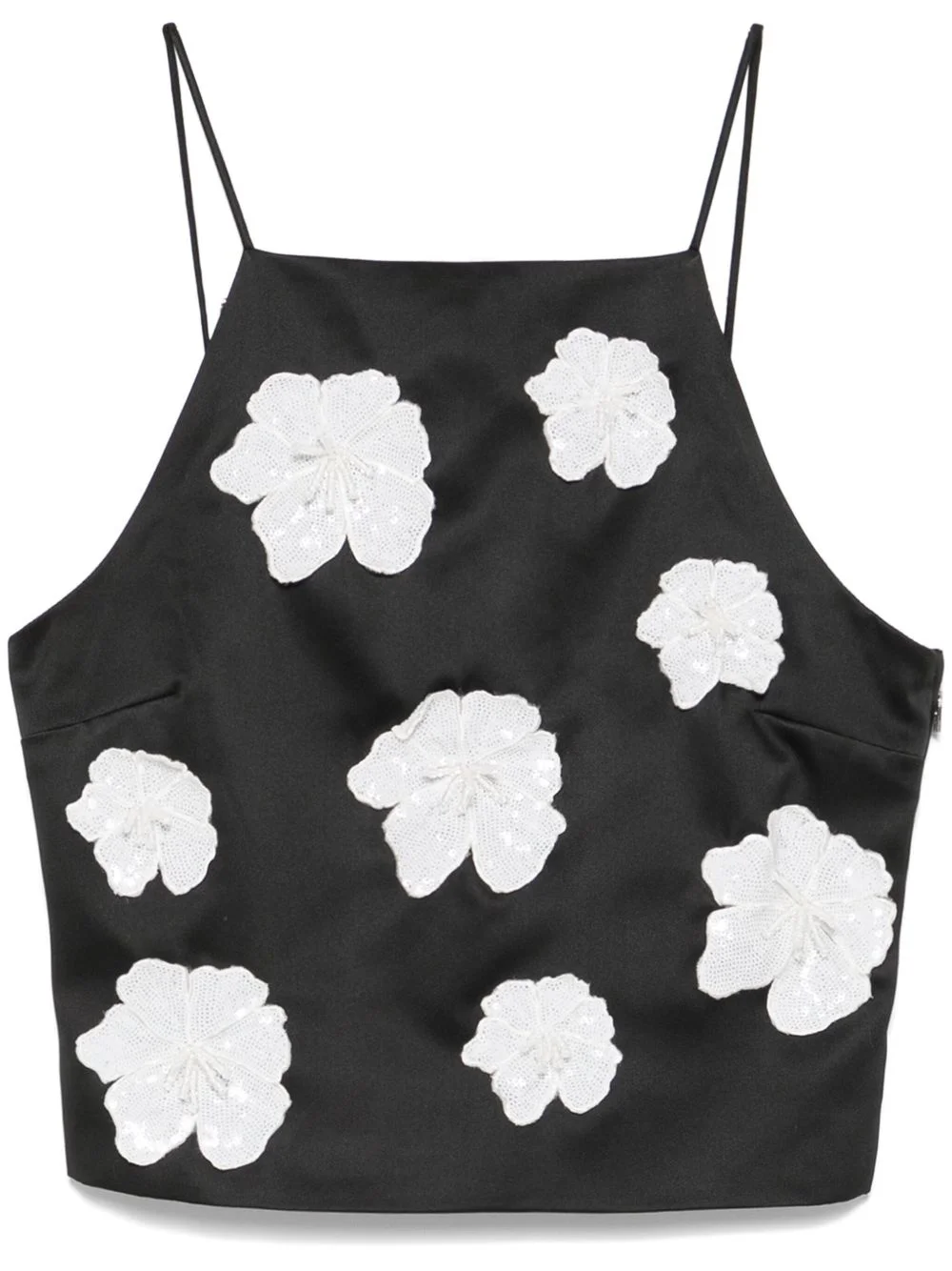 flower satin top Highlights - Black/white - Satin weave - Floral sequin applique - Concealed side zip fastening - Square neck - Adjustable spaghetti straps - Full lining - Straight hem Imported Composition Lining: Viscose 97%, Elastane 3% Outer: Polyester 100% SIZE & FIT Model measurements Height 5 ft 10 in(1.78 m) Bust/Chest 31.49 in(80 cm) Hips 37 in(94 cm) Waist 23.62 in(60 cm) FittingInformation Designed for a slim fit that sits just away from the body offering a close yet comfortable fit Made from a midweight fabric