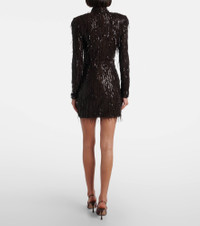 Fringed ruched sequined mesh minidress