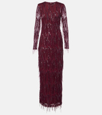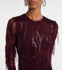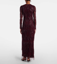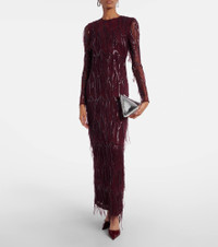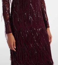 Fill the gaps in your going-out wardrobe with unique and glamorous styles from Rotate. Crafted from mesh, this gown stands out for its striking fringe detailing and statement sequin embellishments. Product Details - Material: 100% polyester - Care instructions: hand wash - Made in China - Designer color name: Port Royale - Item color: burgundy - Lining: 97% viscose, 3% elastane - Material II: 100% polyester - Closure: concealed zipped back - Item number: P01113105 Size & Fit - True to size - Fitted - Slightly stretchy fabric - slit length 33cm-13" - The model seen in the picture is 178cm-5'10" and wearing a size DE 34