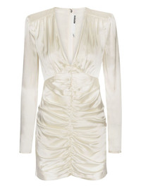 gathered satin mini dress Highlights - Cream - Satin fabric - V-neckline - Long sleeves - Gathered bodice - Fitted silhouette Imported Composition Lining: Polyester 95%, Elastane 5% Outer: Silk 100% Washing instructions Hand Wash