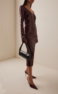 Throw on a party piece by Danish It girls Thora Valdimars and Jeanette Madsen, and you’re guaranteed to feel your oats—such is the power of their cool-girl glamour. PRODUCT DETAILS - Fall '25 - Zip fastening - Composition: 95% recycled polyester, 5% elastane; Detail: 100% recycled polyester - Designer color: Zinfandel - Dry clean - Imported SIZE & FIT - Our model is wearing a size EU 34 - Model is 5'9.5" with a 32" bust, 24" waist, and 35.5" hip