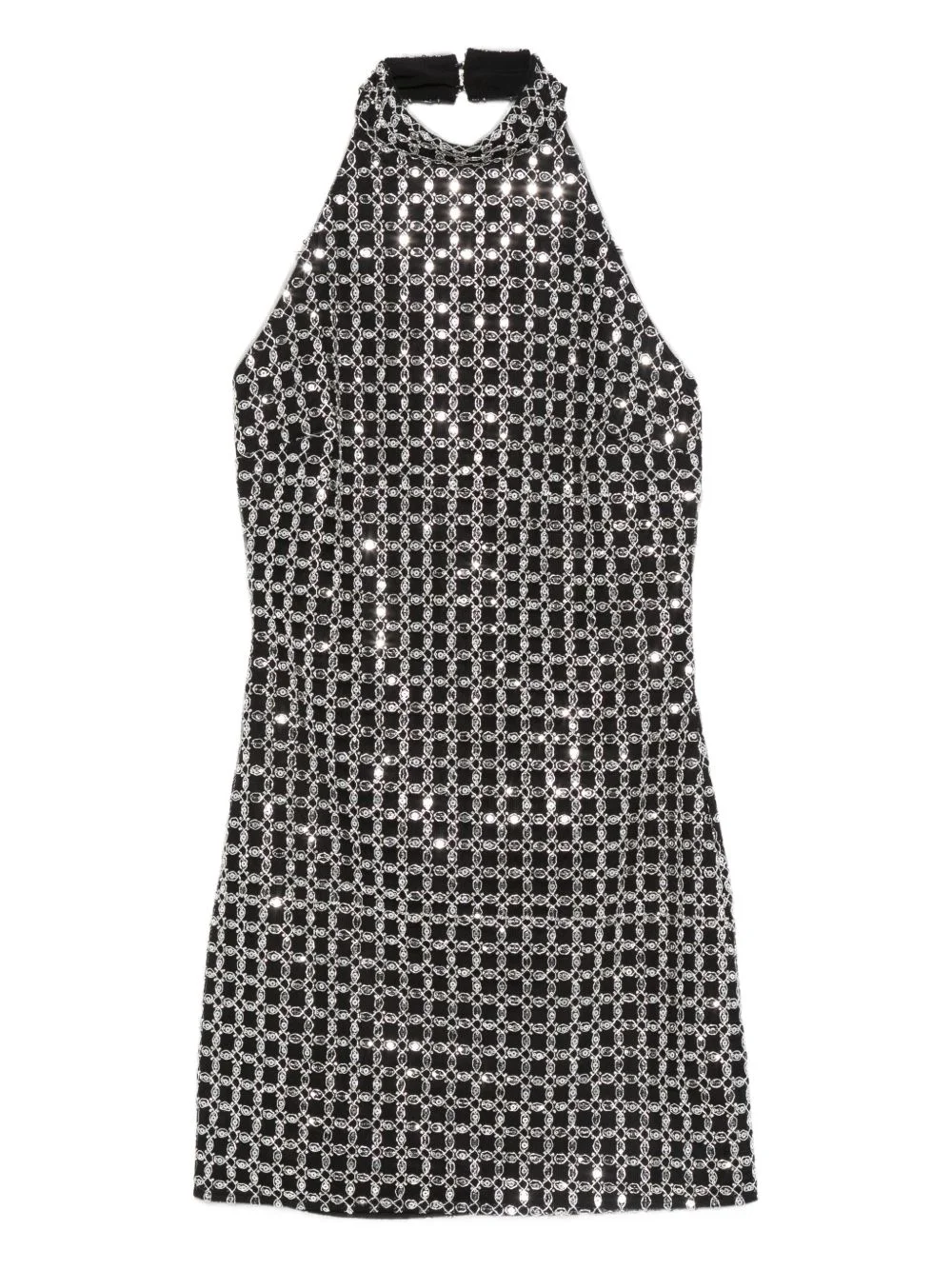 halterneck metallic-embellished dress Highlights - Black - Metallic embellishment - Halterneck - Sleeveless - Geometric pattern Imported Composition Fabric 100% SIZE & FIT Model measurements Height 5 ft 8 in(1.73 m) Bust/Chest 29.92 in(76 cm) Hips 33.07 in(84 cm) Waist 23.22 in(59 cm) Washing instructions Read Manufacturer Guidelines